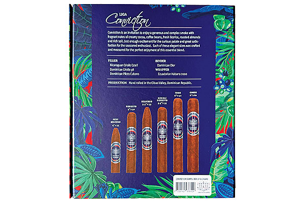 CONVICTION ist eine mehrfach ausgezeichnete Linie: komplex, großzügig und mit einem facettenreichen Aromaprofil, das sich im Verlauf entfaltet. Die Komposition vereint Ecuador H-2000 als Deckblatt, Dominican Olor als Umblatt sowie Filler aus Nicaragua (Criollo Estelí) und dominikanischem Piloto & Criollo 98 – geprägt von den vulkanischen Böden Nicaraguas und den traditionsreichen Tabaken der Dominikanischen Republik. Die Sorgfalt hört nicht bei der Mischung auf: Jede Zigarre wird einzeln geprüft und anschließend bis zu sechs Monate gelagert, damit die ausgewählten Tabake ihre volle Harmonie entwickeln können.