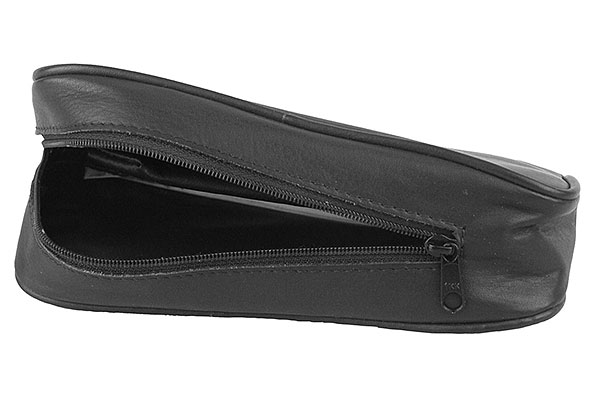 Beschreibung: Diese klassische Pfeifentasche ist aus schwarzem Leder gefertigt und bietet eine zweigeteilte Aufbewahrungslösung. An der Oberseite befindet sich ein separates Fach mit schützendem Gummifutter für losen Tabak. Das untere Hauptfach bietet ausreichend Platz für eine Pfeife sowie nötiges Zubehör. Beide Fächer sind mit stabilen Reißverschlüssen ausgestattet, um eine sichere Verwahrung und einen einfachen Transport zu gewährleisten.