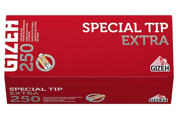 Die GIZEH Special Tip Extra Red Filterhülsen (250er Box) sind hochwertige King Size Hülsen für ein sauberes, gleichmäßiges Stopfergebnis. Sie eignen sich ideal für alle gängigen Stopfmaschinen und bieten dank stabiler Papierqualität eine zuverlässige Verarbeitung. Herstellerbeschreibung: GIZEH steht für bewährte Qualität im Raucherzubehör. Die Special Tip Extra Hülsen kombinieren robustes Papier mit einem angenehm ausgewogenen Rauchverhalten und sind ideal für den täglichen Gebrauch.