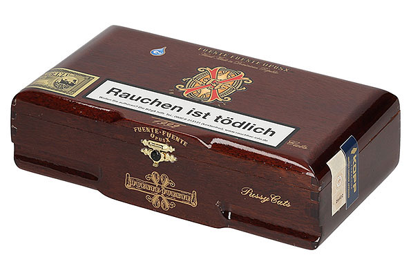 Die Arturo Fuente Opus X Pussy Cats sind eine exklusive Zigarre im Petit Corona Format mit einer Länge von ca. 108 mm und einem Ringmaß von 42. Die Zigarren werden vollständig handgerollt und bestehen aus Tabaken aus der Dominikanischen Republik, vom berühmten Anwesen „Chateau de la Fuente“.