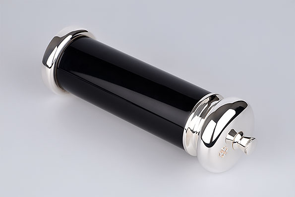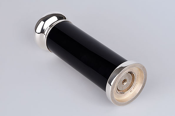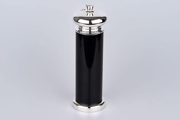 Die edle Versilberung verleiht der Oberfläche ihren sanften Glanz, während die Bakelit-Elemente einen stilvollen Kontrast und eine angenehme Haptik bieten. Im Inneren sorgt ein robustes Mahlwerk für gleichmäßiges und präzises Mahlen – ob feine Körnung oder kräftiger Pfefferschub, stets perfekt abgestimmt.