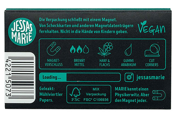 MARIE Fine im türkisen Hard-Cover-Heftchen ist der Klassiker für Selbstdreher. Mit dem praktischen Magnetverschluss bleiben die 100 Blättchen immer sicher verstaut. Das Papier aus Flachs und Hanf brennt langsam ab und hat Cut Corners für leichteres Eindrehen.