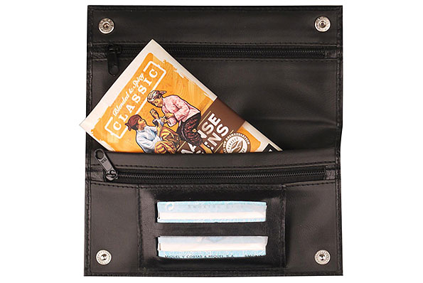 2 Fächer mit Reißverschluss Integriertes Fach für 100er Zigarettenpapier Druckknopfverschluss Praktisches Extra-Fach für Feuerzeug oder Filter