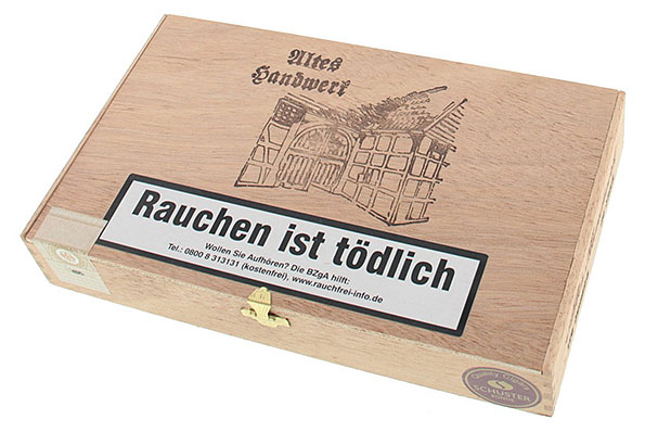 Die Serie "Altes Handwerk" stammt aus dem renommierten Hause August Schuster in Bünde. Diese Zigarren werden als klassische Shortfiller maschinell gefertigt (MM - Mecanizado), bestehen dabei jedoch zu 100% aus Tabak und verwenden ein echtes Naturtabak-Umblatt anstelle von Bandtabak. Die Variante 116S Corona überzeugt durch ihr helles, feines Sumatra-Deckblatt. Zusammen mit der ausgewogenen Einlage-Mischung bietet sie eine angenehme Milde und die typisch trocken-würzige Note. Ein ehrliches Stück deutscher Tradition mit einem hervorragenden Preis-Leistungs-Verhältnis.
